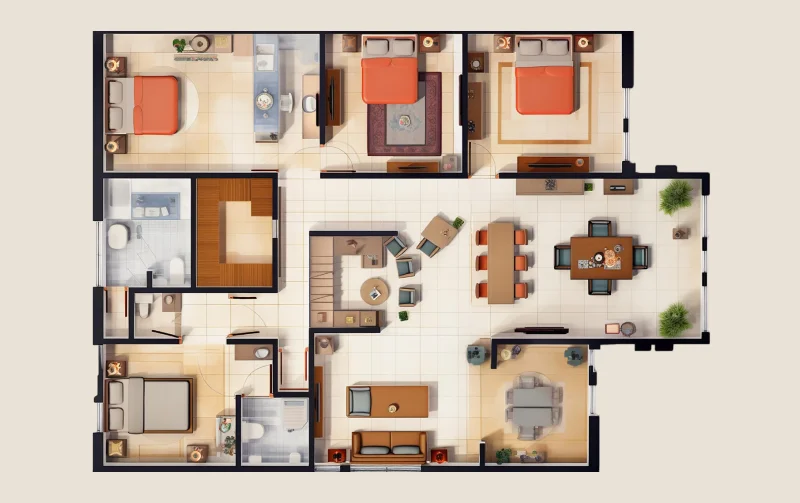 We prepare 3D floor plans from various angles and perspectives for a complete view of the unit. Mainly utilized for marketing and presentation, the plans provide the exact visualization of the layout. We help the project stakeholders to envisage the structure artistically before the construction. Our 3D floor plans reduce construction and marketing costs while selling residential & commercial units.