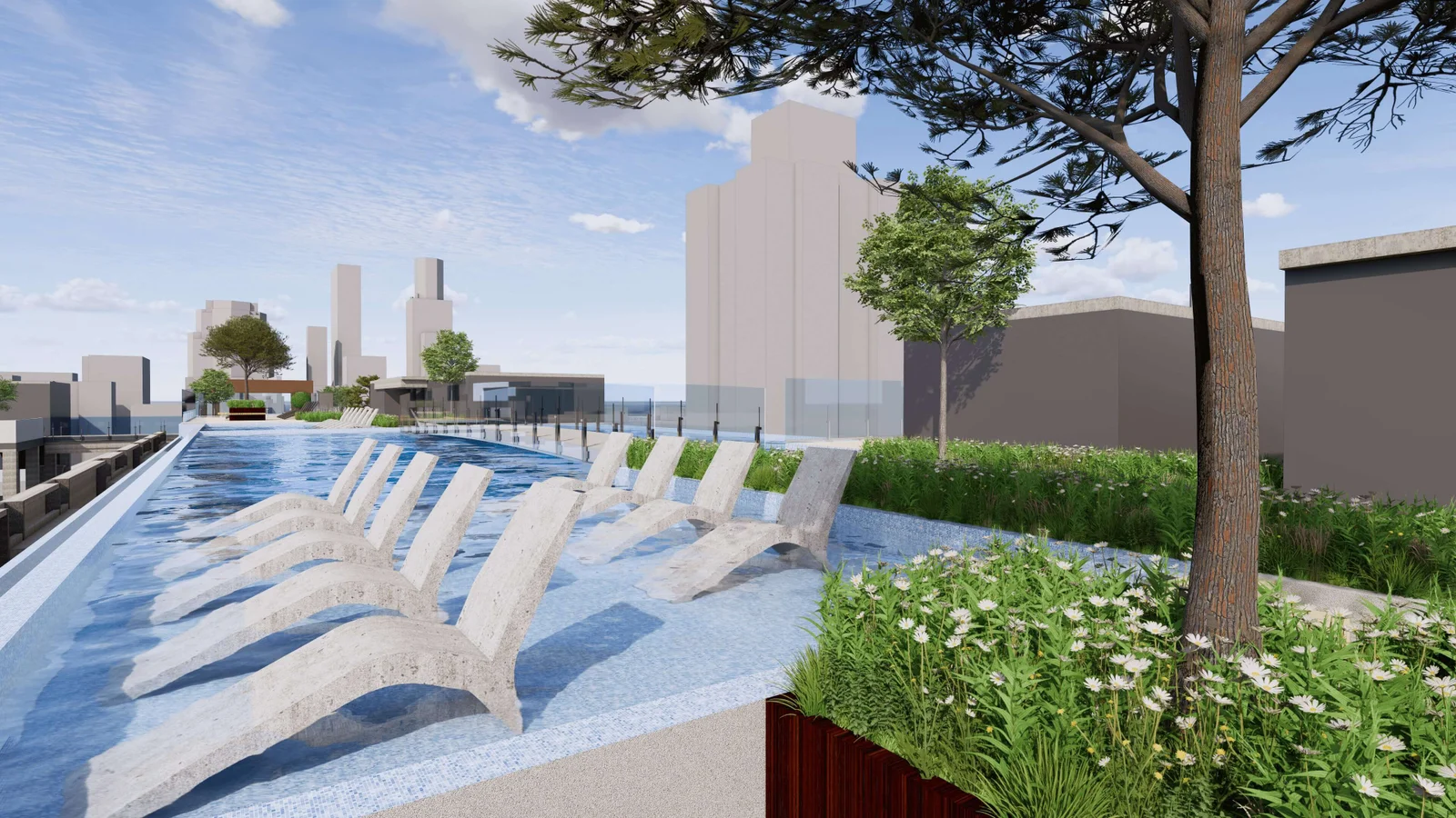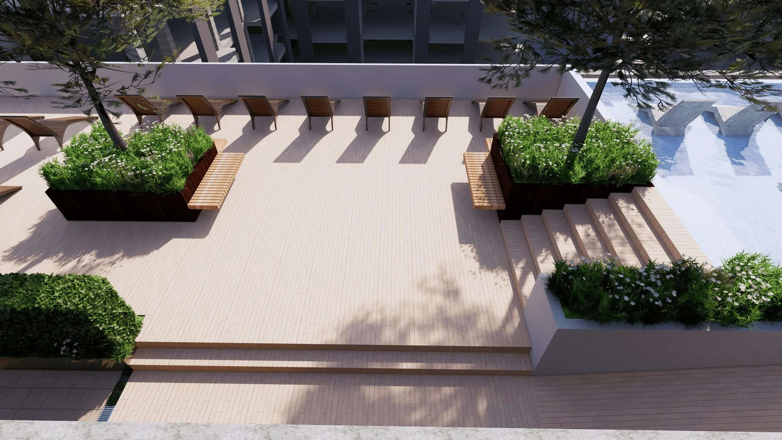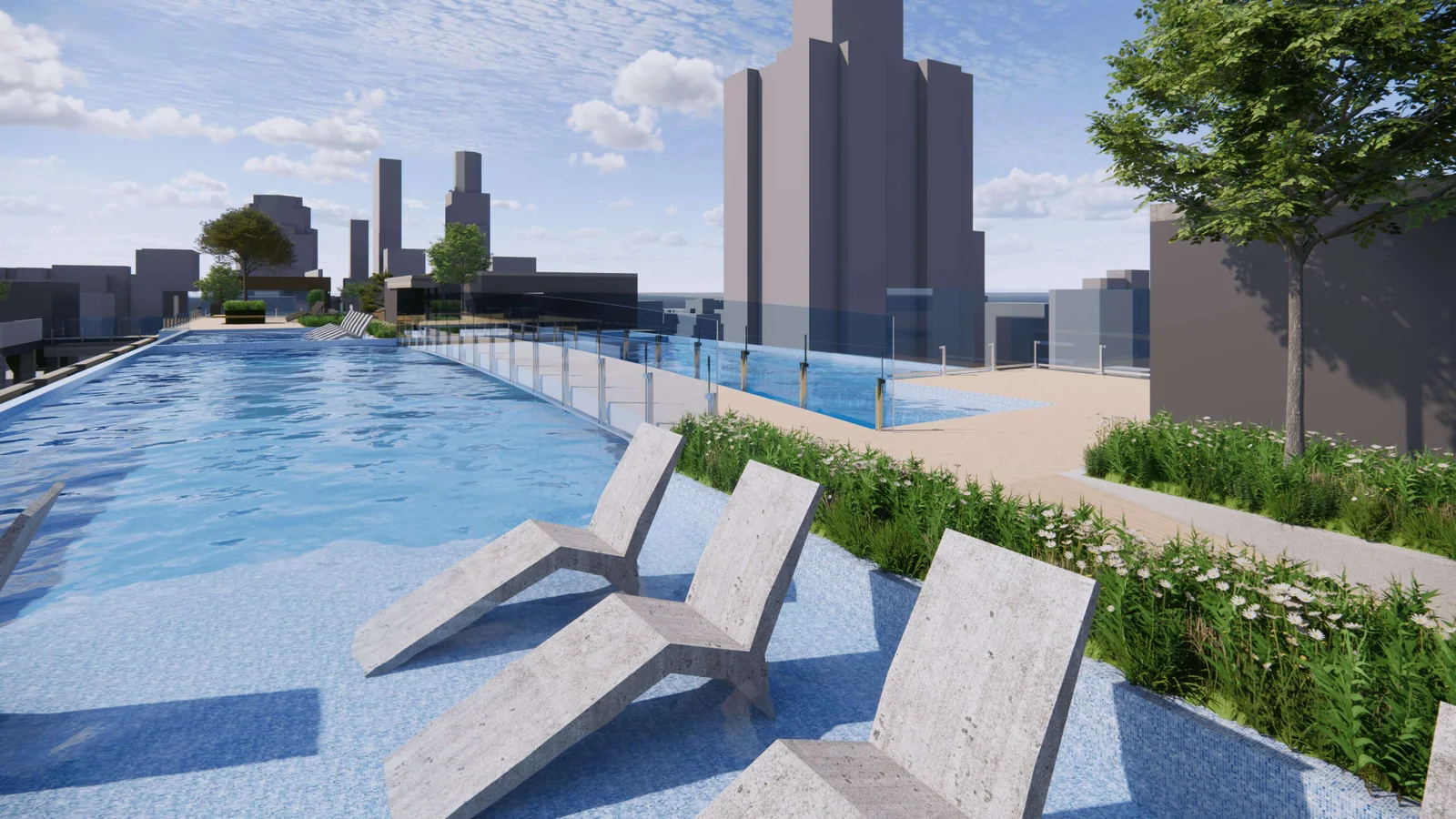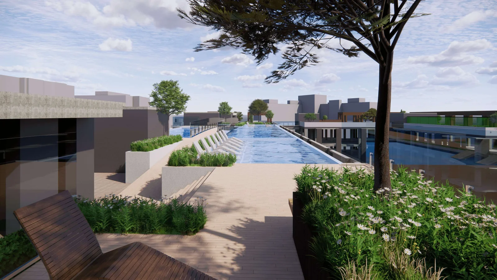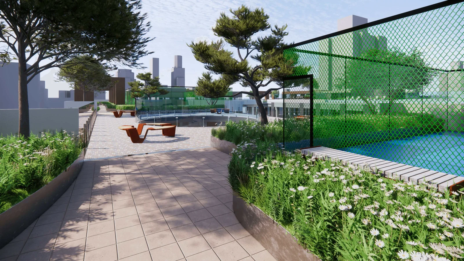 The primary objective of this project was to create an inviting and functional rooftop space for a cluster of three 15-story apartment buildings. The client aspired to develop a rooftop garden, swimming pool, tennis court, walking pathways, and other recreational facilities to enhance the quality of life for the residents. Uniquescadd’s mission was to collaborate with the UK architects to design, model, and provide a comprehensive visual representation of the rooftop landscape to facilitate a smooth project execution.