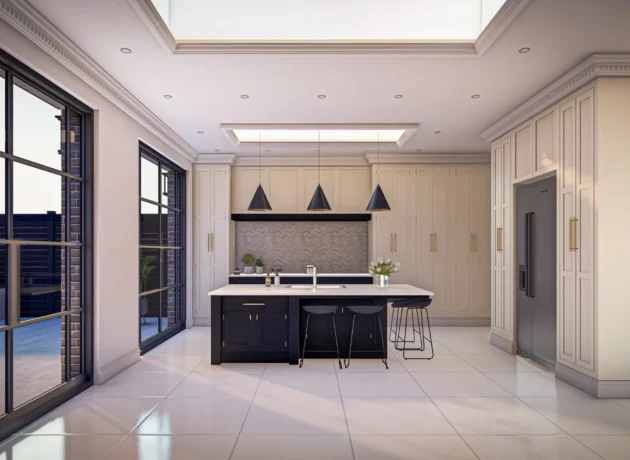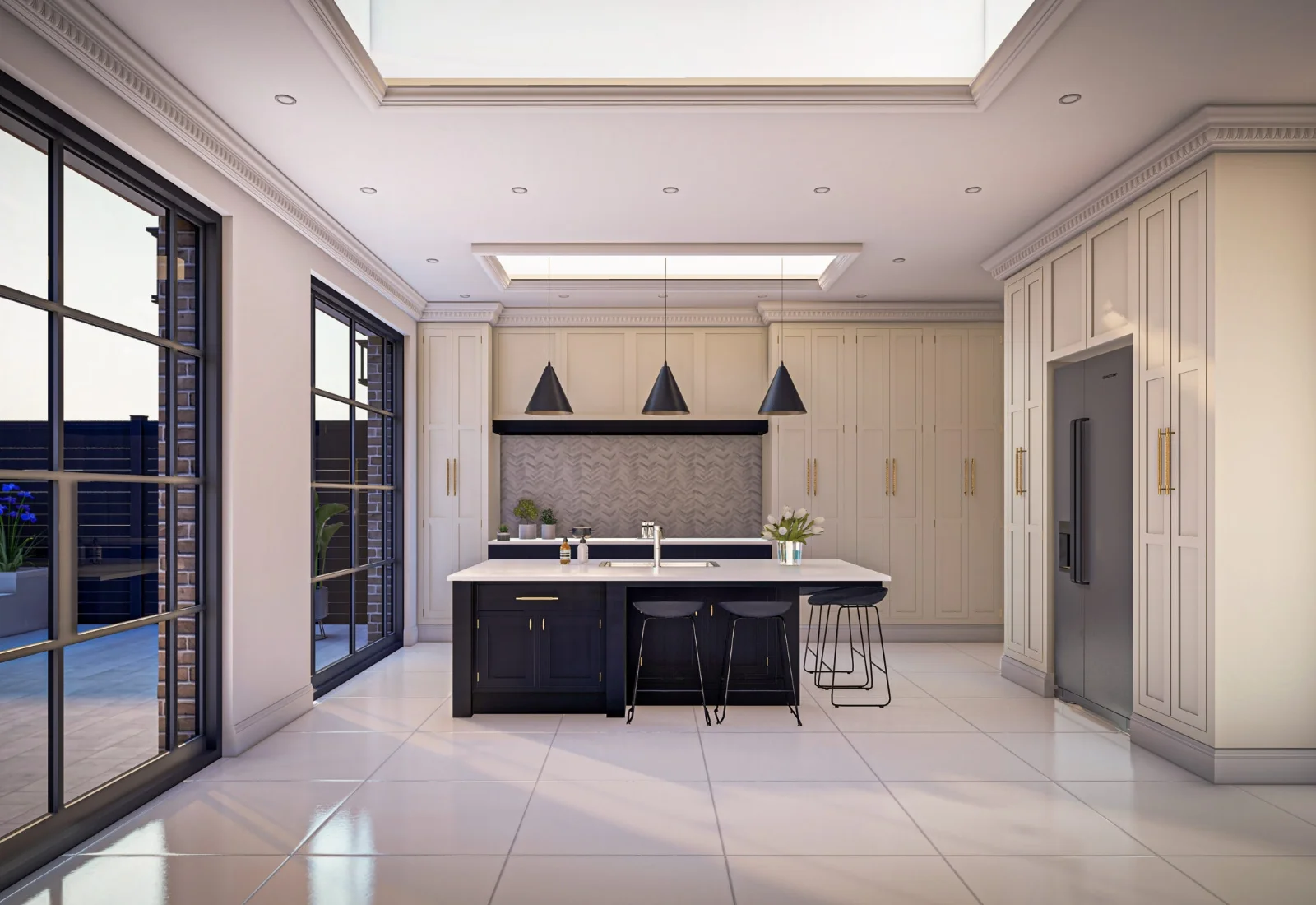 Our team was clear with the primary objective, to create detailed and accurate visualizations that reflect the client’s modern design ethos. The visualizations aimed to illustrate the effective use of natural light, the arrangement of clean lines, and the overall functionality of the design, particularly in common areas like the kitchen and living spaces.