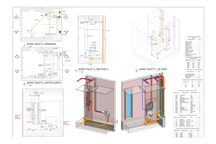 Our team of experts provides MEP BIM drafting services for HVAC, electrical, plumbing, and fire protection, with a high level of detailing in 3D models depicting MEP aspects like lighting, drainage, electrical piping, and more.