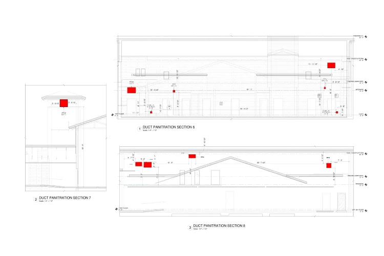The MEP shop drawings include detailed layouts of sections and elevations used for the on-site installation of MEP components.